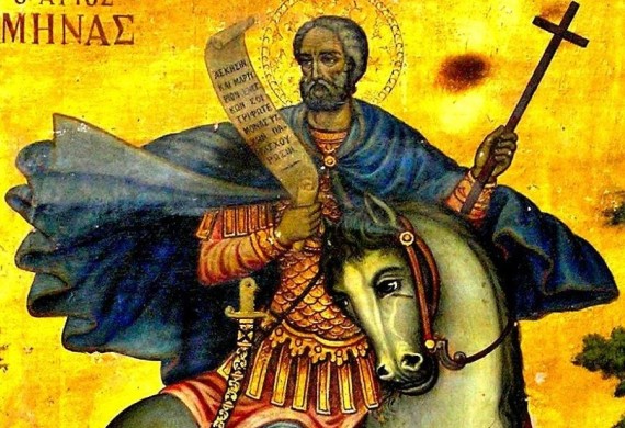 Among the many miracles of Saint Menas is also the one that took place in 1826 in Heraklion, Crete, a city that particularly honors the Saint. In 1821, after the outbreak of the great Greek Revolution against the Turks, the conquerors carried out the massacre of thousands of civilians in many areas. Among the first to pay with their blood for the revolution were the inhabitants of Crete. Among the thousands of victims were the Metropolitan of Crete, the Bishops of Chania, Knossos, Heraklion, Lambi, Sitia, and others who were slaughtered on June 24, 1821, in the courtyard of the Metropolitan Church of Heraklion. In fact, the officiating priest was slaughtered on the Holy Table! Five years later, in 1826, the Turks of Heraklion planned to carry out a massacre of Christians, again at the Metropolitan Church of Saint Menas, on April 18, Easter Sunday, during the Resurrection Divine Liturgy, to catch the Christians off guard. As a diversion, they set fire to various remote parts of the city, while armed mobs had gathered outside the church, waiting for the time of the Gospel reading to invade and begin the slaughter. But as soon as the reading began, a white-haired elderly horseman appeared, running around the temple, brandishing his sword, and chasing the would-be slaughterers who fled in panic. Thus, the long-suffering Christians of Heraklion were saved from the terrible danger. The Turks thought that the horseman was a Muslim notable sent by the city governor to prevent the massacre. When they complained to the Governor, he assured them that he knew nothing about it, and it was even found that the particular notable they had in mind had not left his house at all. Then the Turks understood that it was a miracle of Saint Menas, they informed the Greeks about the event, and since then the Muslims held the Saint in high regard, even offering gifts at his temple. This miracle of Saint Menas was established to be honored in Heraklion on the Tuesday of the Bright Week when the relic of the Saint is displayed for veneration during the evening service.